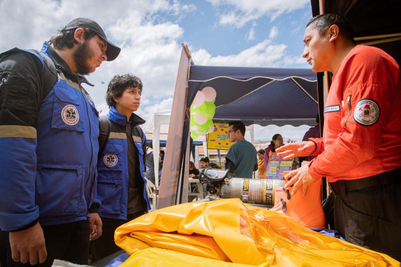 Uniformados del Cuerpo de Bomberos Riobamba (CBR) participaron en la “Feria de prevención de riegos de desastres, por un Ecuador preparado y Resiliente ante los diferentes eventos adversos e información de los servicios ciudadanos” organizada por la Secretaría de Gestión de Riesgos.