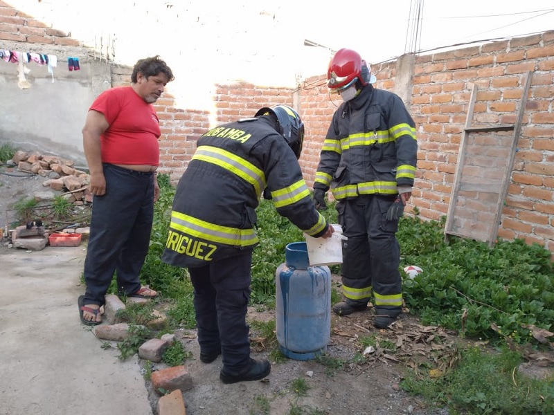 Tras el llamado de emergencia, uniformados del Cuerpo de Bomberos del Gobierno Autonomo Descentralizado Munucipal Riobamba (CBGADMR) acudieron a una fuga de gas que se reportó en las calles Larrea entre Villarroel y Olmedo, sector de Santa Rosa, el hecho se dio al intentar conectar el cilindro de gas con la válvula, así lo manifestó Natalia Haro, quien fue la persona que se comunicó al número de emergencia y reportó el incidente.