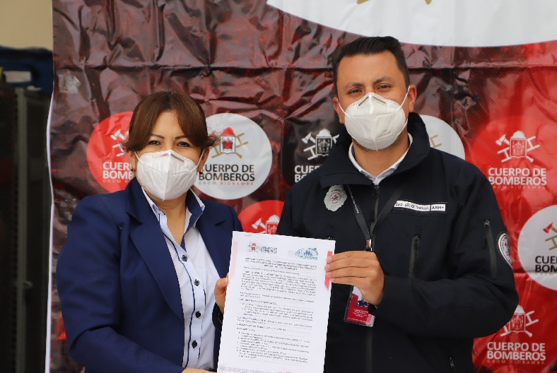 La mañana de hoy en un acto que contó con la presencia del capitán Orlando Vallejo, comandante del Cuerpo de Bomberos del Gobierno Autónomo Descentralizado Municipal Riobamba (CBGADMR), Yolanda Haro Gerente de la Cooperativa 4 de Octubre, autoridades de la institución Bomberil y personal operativo, donde se realizó la firma de un convenio interinstitucional con el objetivo de brindar facilidades al momento de acceder a créditos para los uniformados.