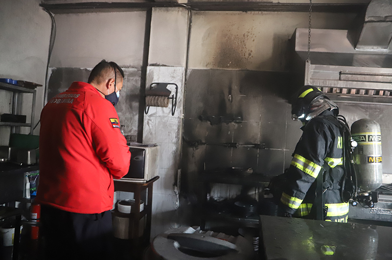 Tras el llamado de emergencia que se reportó cerca del medio día en las calles Uruguay y Avenida Daniel León Borja, uniformados del Cuerpo de Bomberos del Gobierno Autónomo Descentralizado Municipal Riobamba (CBGADMR) atendieron un principio de incendio, al ingresar al local comercial realizaron técnicas de chorro directo de la unidad para sofocar el flagelo.
