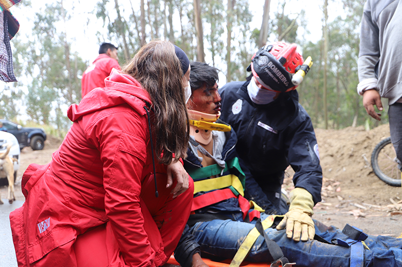 Al llegar al lugar, los uniformados del CBGADMR acudieron al rescate de las dos víctimas atrapadas, mismas que se encontraban con signos vitales y concientes, miembros de la institución bomberil les dieron los primeros auxilios básicos y realizaron técnicas de rescate para extraer a las personas heridas, quiénes fueron transladas por el personal del MSP a la casa de salud más cercana.