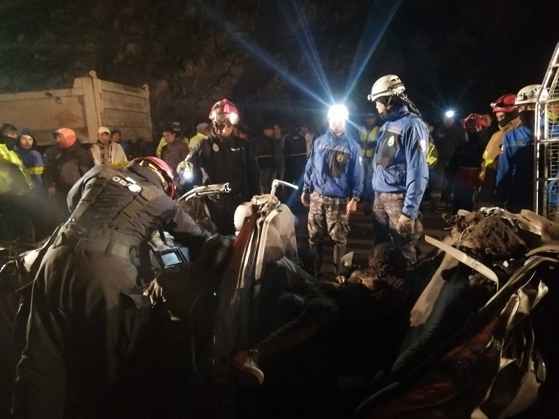 Personal del Cuerpo de Bomberos del Gobierno Autónomo Descentralizado Municipal de Riobamba (CBGADMR) acudió al lugar de los hechos tras el llamado aproximadamente a las 04h00 concluyendo las tareas de extricación a las 06h00. Una vez rescatados los cuerpos del interior del automotor se confirmó el fallecimiento de cinco personas que quedaron atrapadas tras el derrumbe. Dos adultos y tres niños, miembros de una misma familia fueron las víctimas fatales.